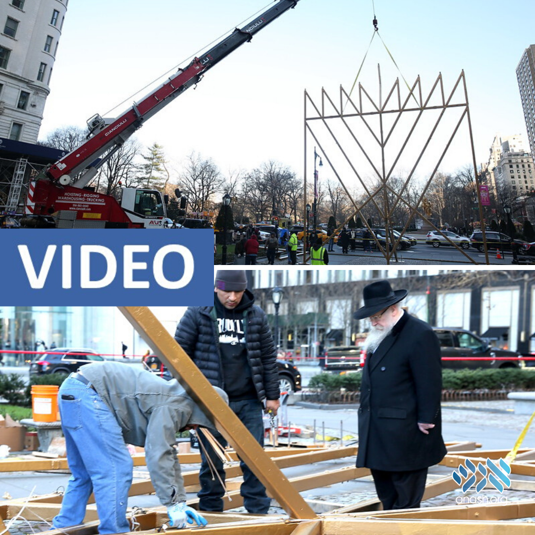 On Wednesday Chof Kislev, the world’s largest Chanukah menorah was raised by a crane in central New York City.