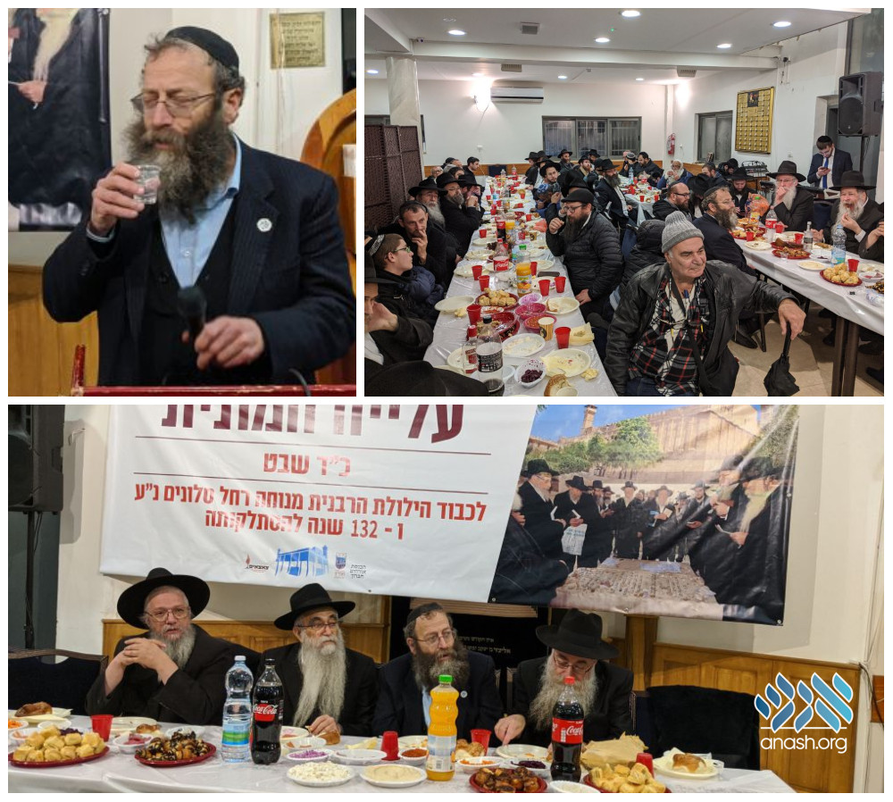 After davening by her kever, Mincha was held in Kollel Menucha Rochel, adjacent to the kever and Ma’ariv was held in Meoras Hamachpela. This was followed by a grand farbrengen in Beis Chaya Mushka Kiryas Arba with Rebbetzin Menucha Rochel’s descendants and other chassidim.