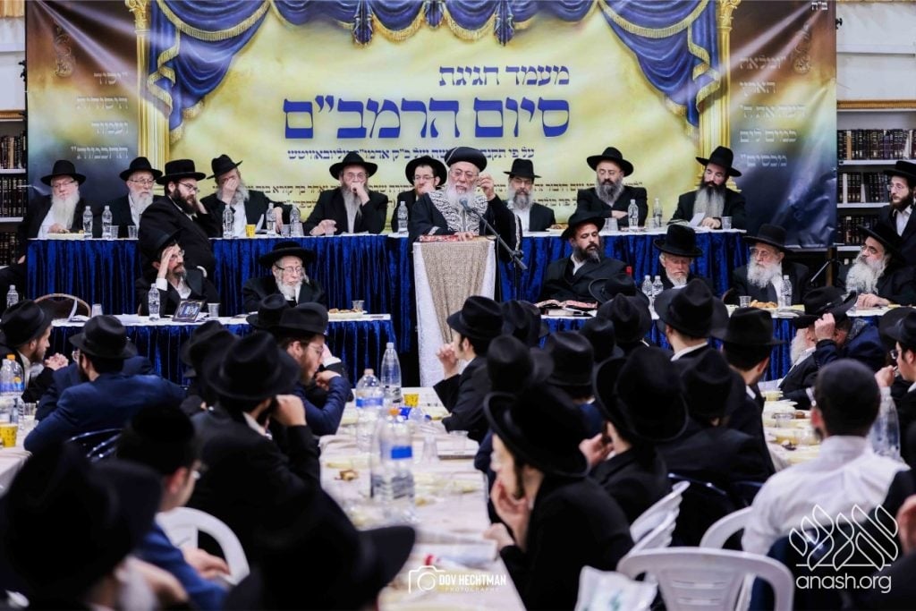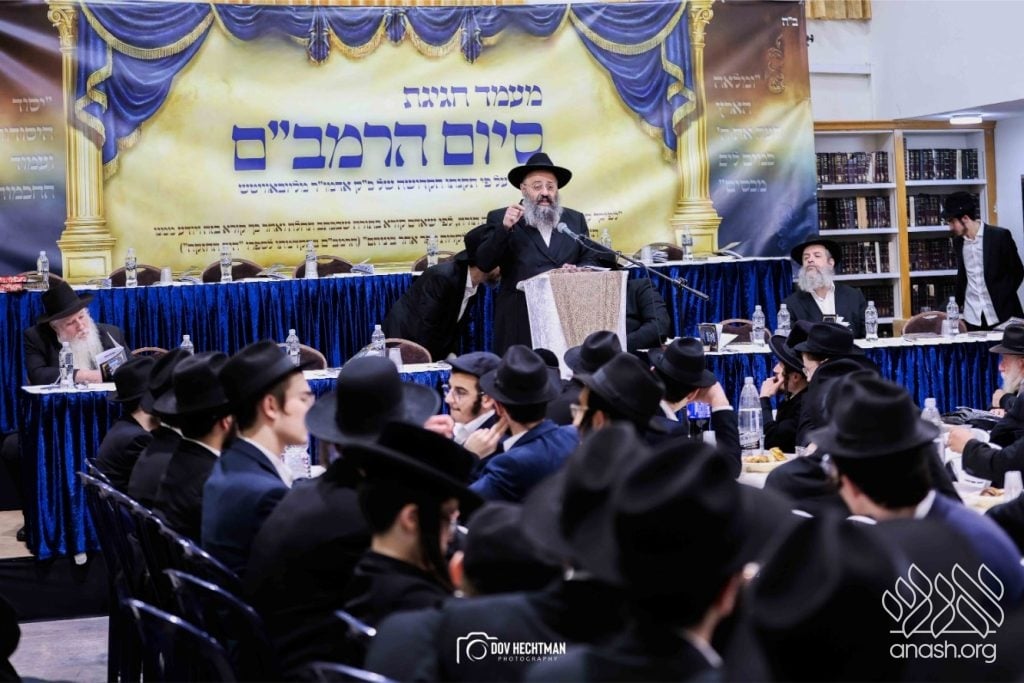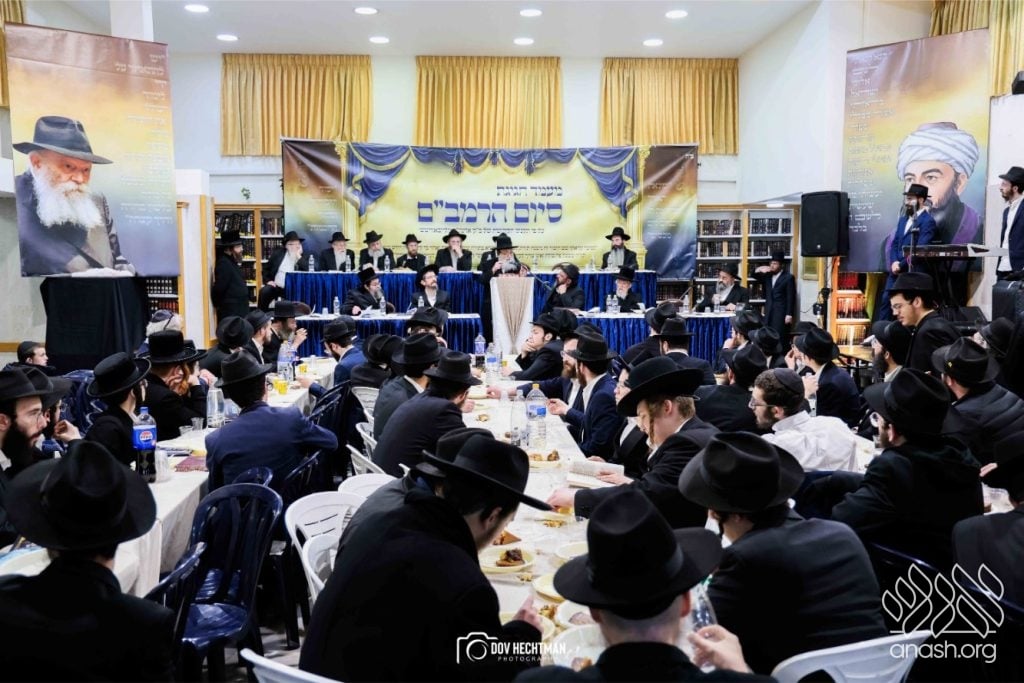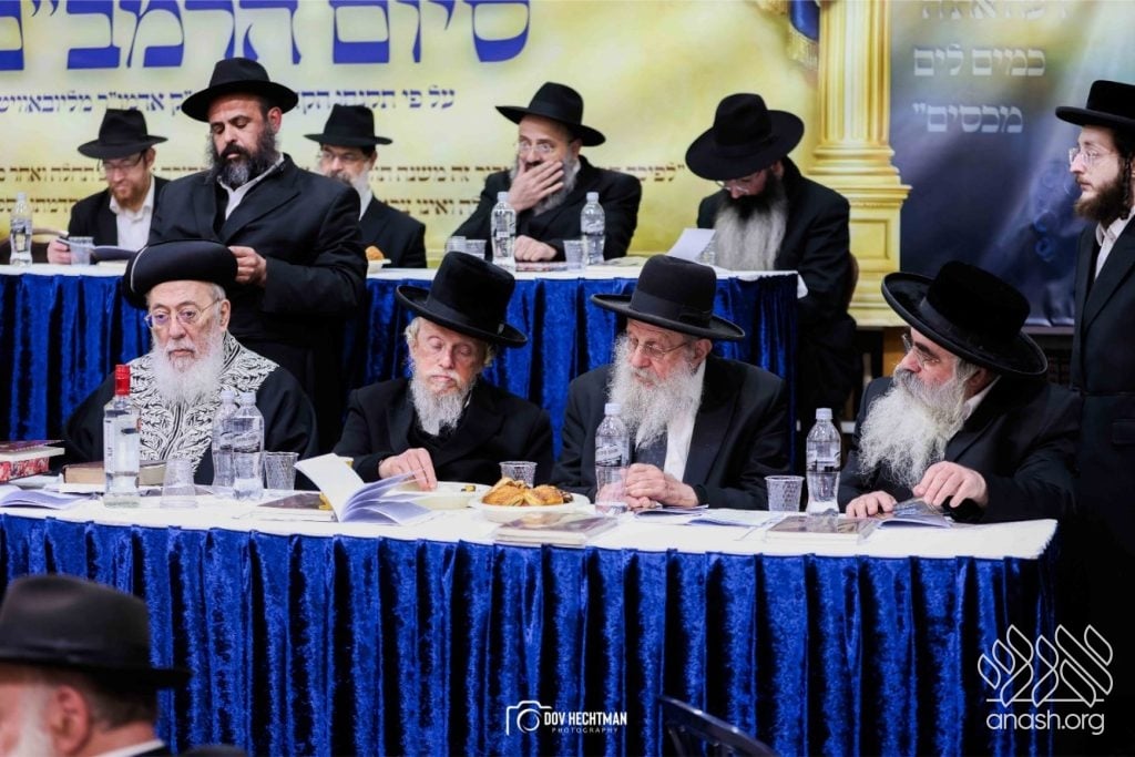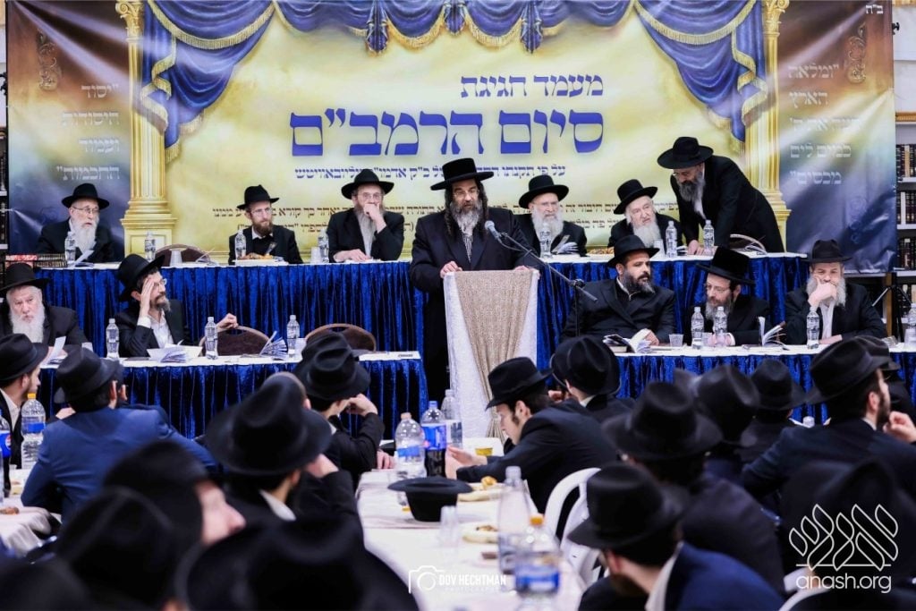 Rebbes, rabbonim, and roshei yeshiva, encouraged the study of the daily Rambam at a powerful siyum for the broader frum community, held at Yeshivas Toras Emes Lubavitch in central Yerushalayim.