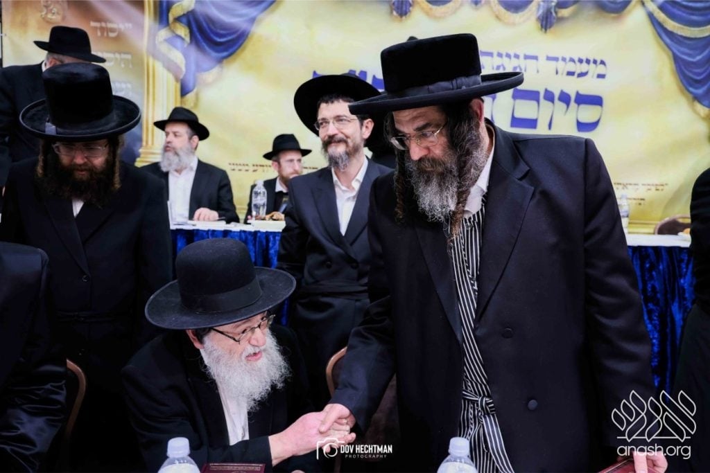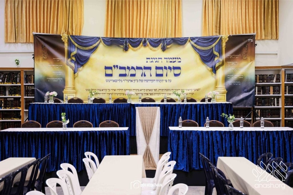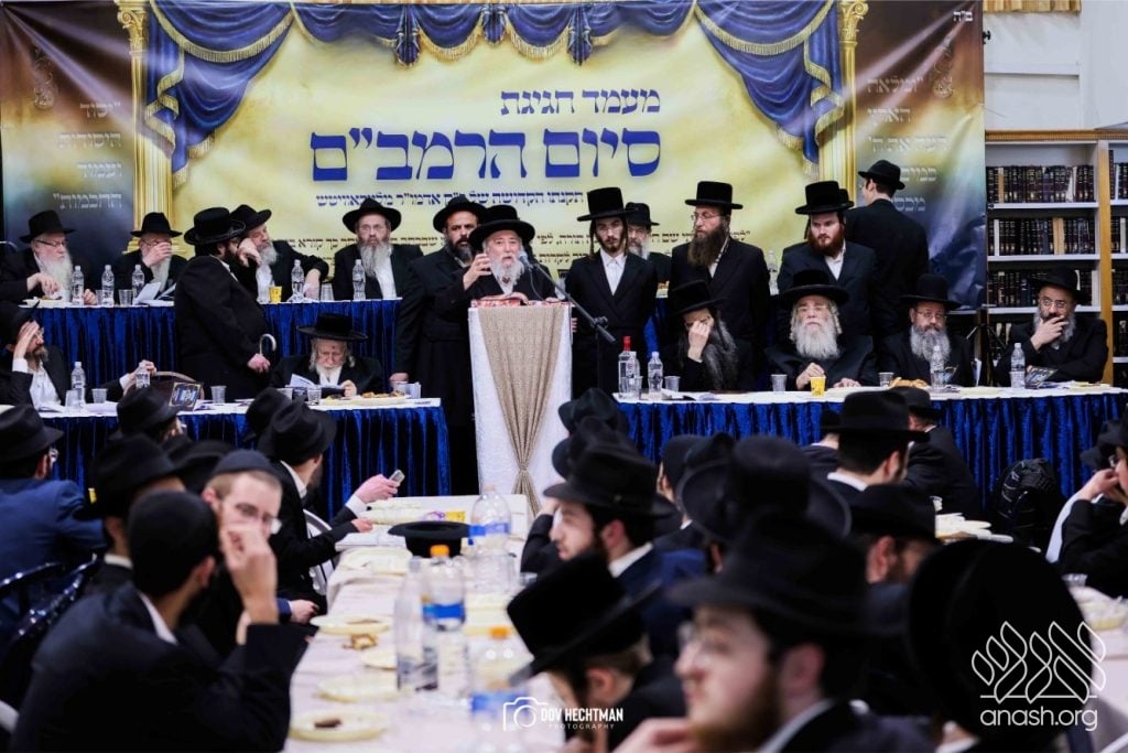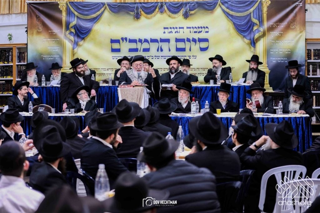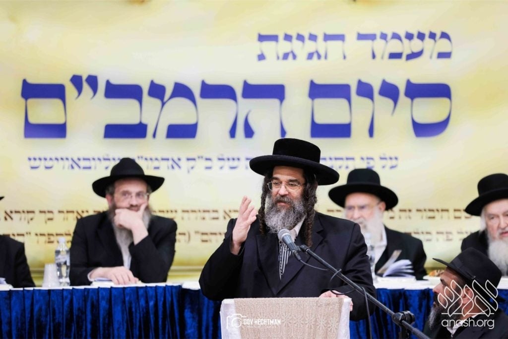 Rebbes, rabbonim, and roshei yeshiva, encouraged the study of the daily Rambam at a powerful siyum for the broader frum community, held at Yeshivas Toras Emes Lubavitch in central Yerushalayim.
