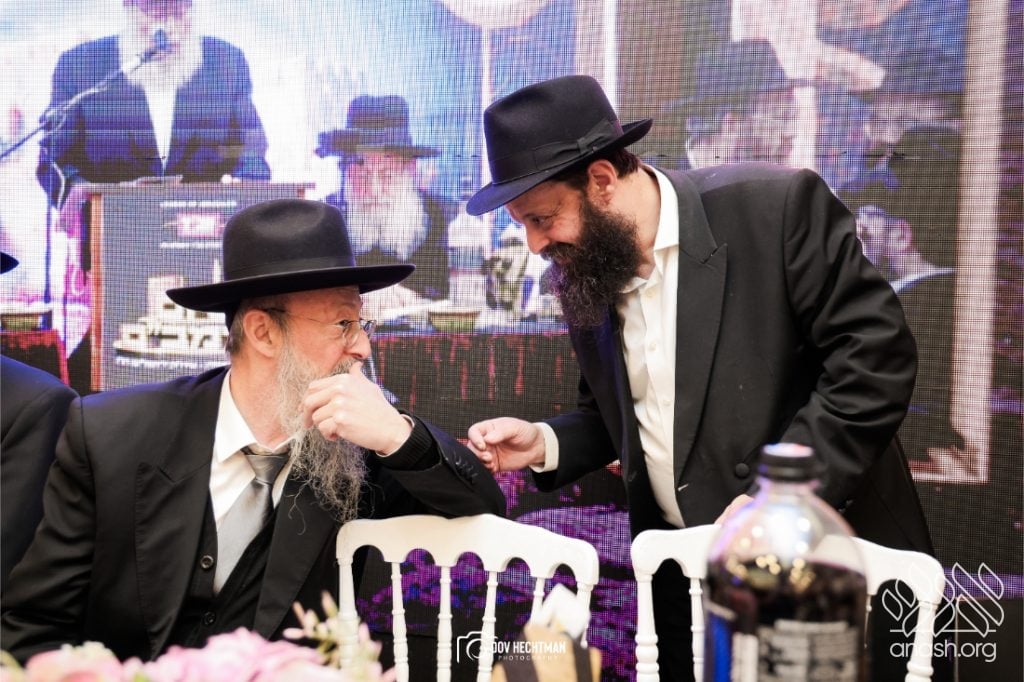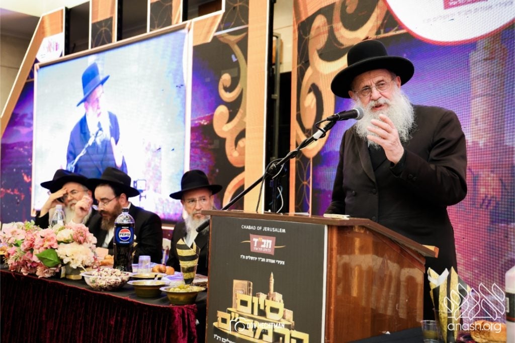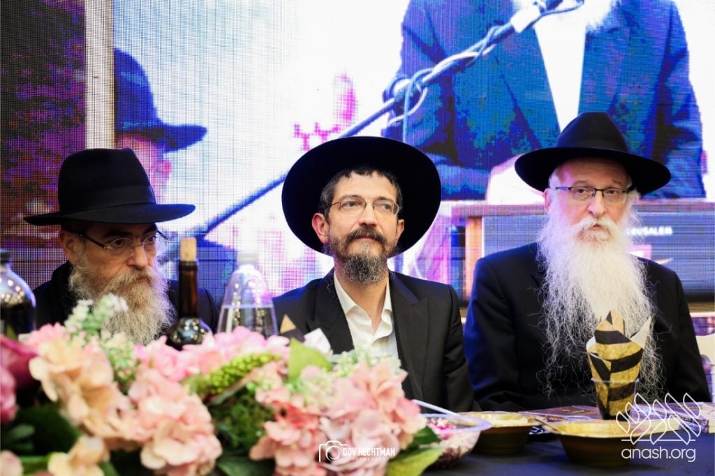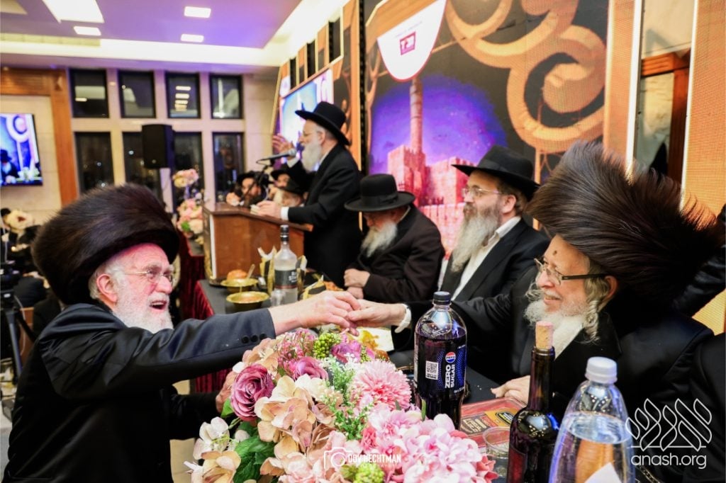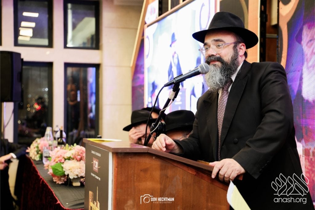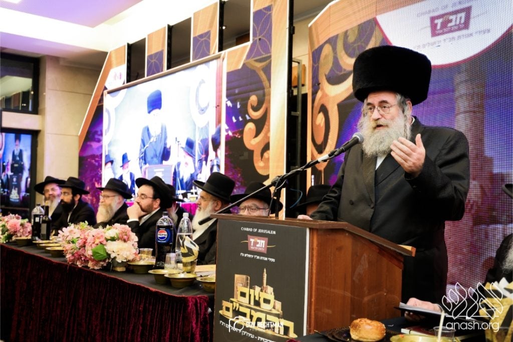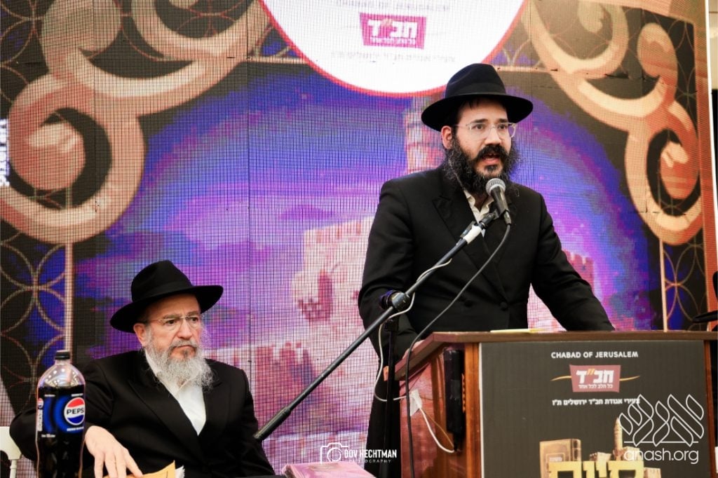 The evening was opened and masterfully hosted in the finest tradition by Rabbi Naftali HaKohen Roth, chairman of Tze’irei Agudas Chabad of Yerushalayim, who leads the organization of this central event with remarkable dedication and effort.
