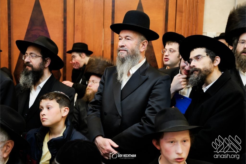 The Rebbe of Stropkov delivered enthusiastic remarks, strengthening the Rambam learners and highlighting the special ma’ala of a fixed daily learning program shared across all of Klal Yisroel, and the great nachas ruach it brings Above.