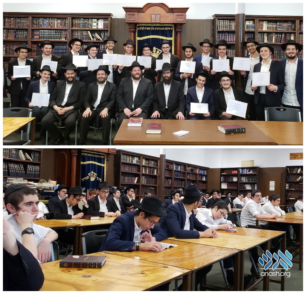 During the siyum, the talmidim heard divrei chizzuk from the yeshiva hanhala and were presented with certificates. They also received monetary reward to buy more sefarim for their personal libraries.