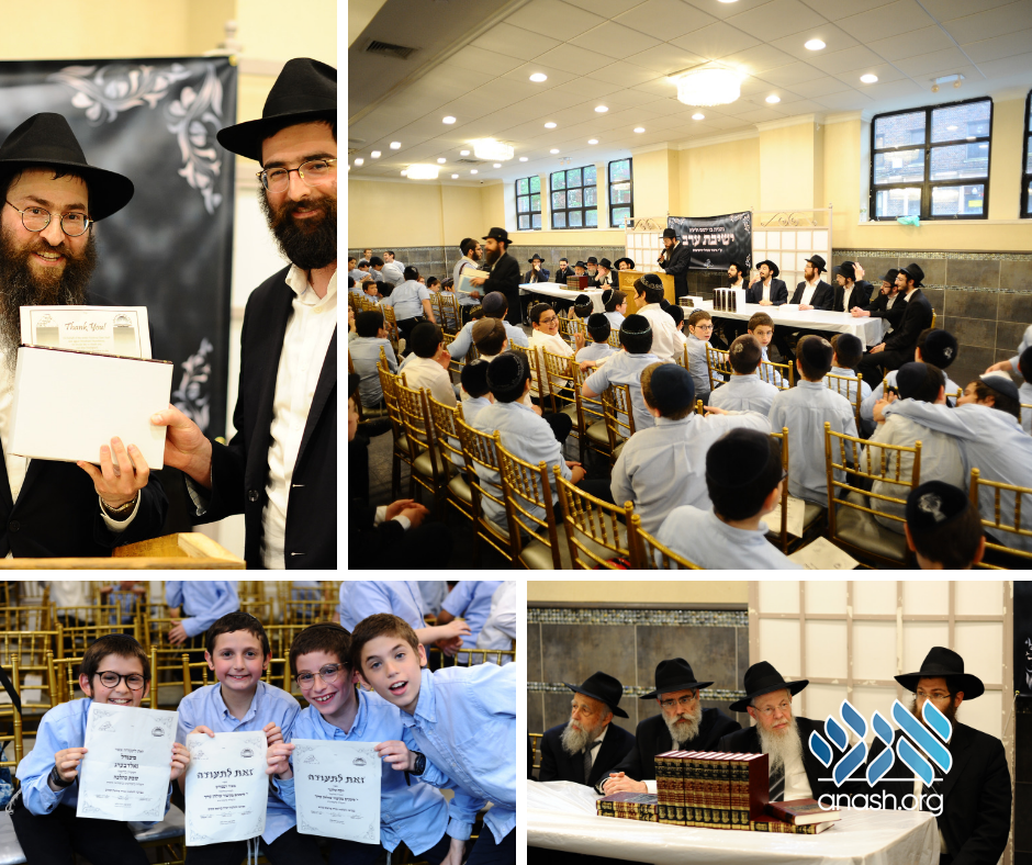 Hundreds of boys gathered in Lubavitcher Yeshiva Thursday evening for the Yeshivas Erev grand finale and prize distribution.