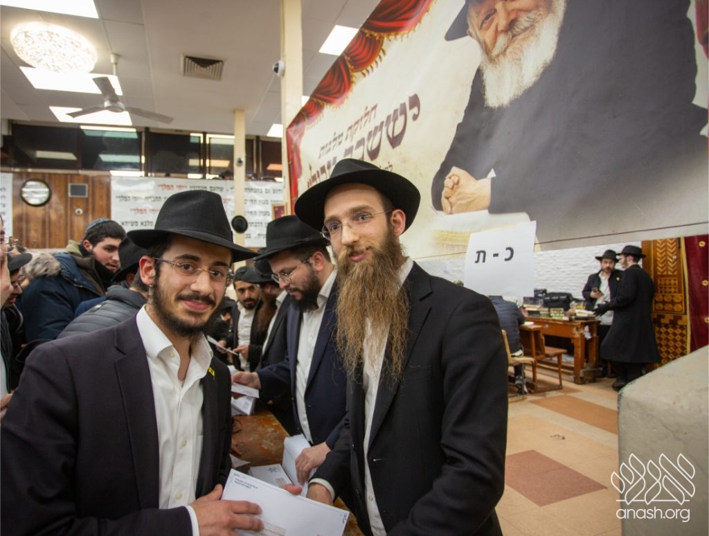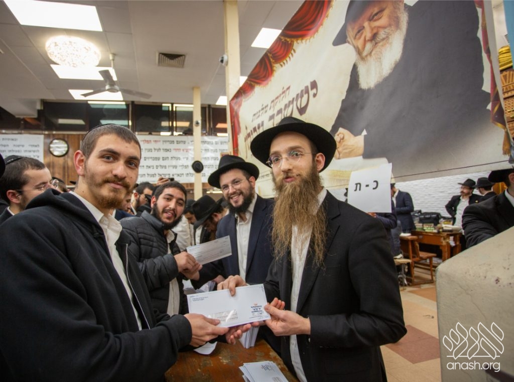 At the end of the week, the monthly distribution took place at 770. Hundreds of bochurim passed through an orderly line and received personal checks for their learning – without raffles and without any extra conditions. Everyone who put in the effort and learned throughout the month left with a respectable stipend in hand; in total, tens of thousands of dollars were distributed.
