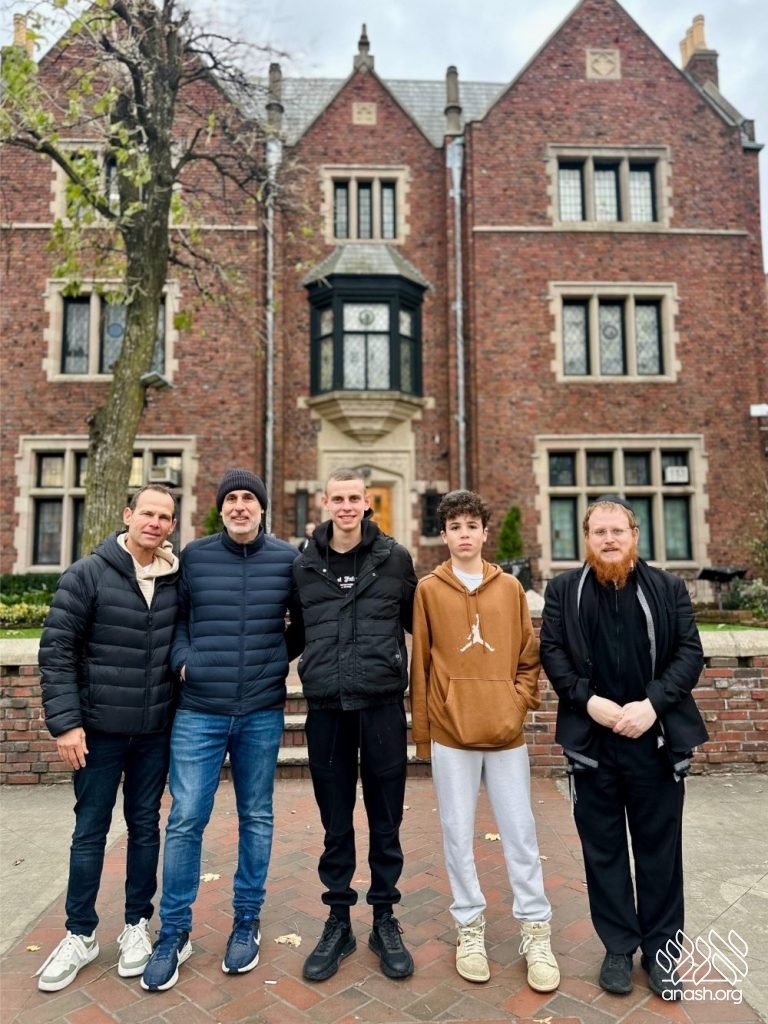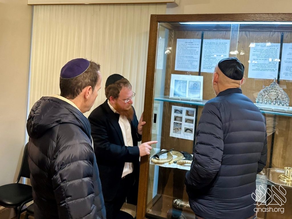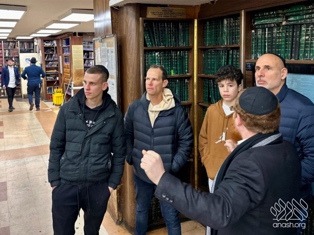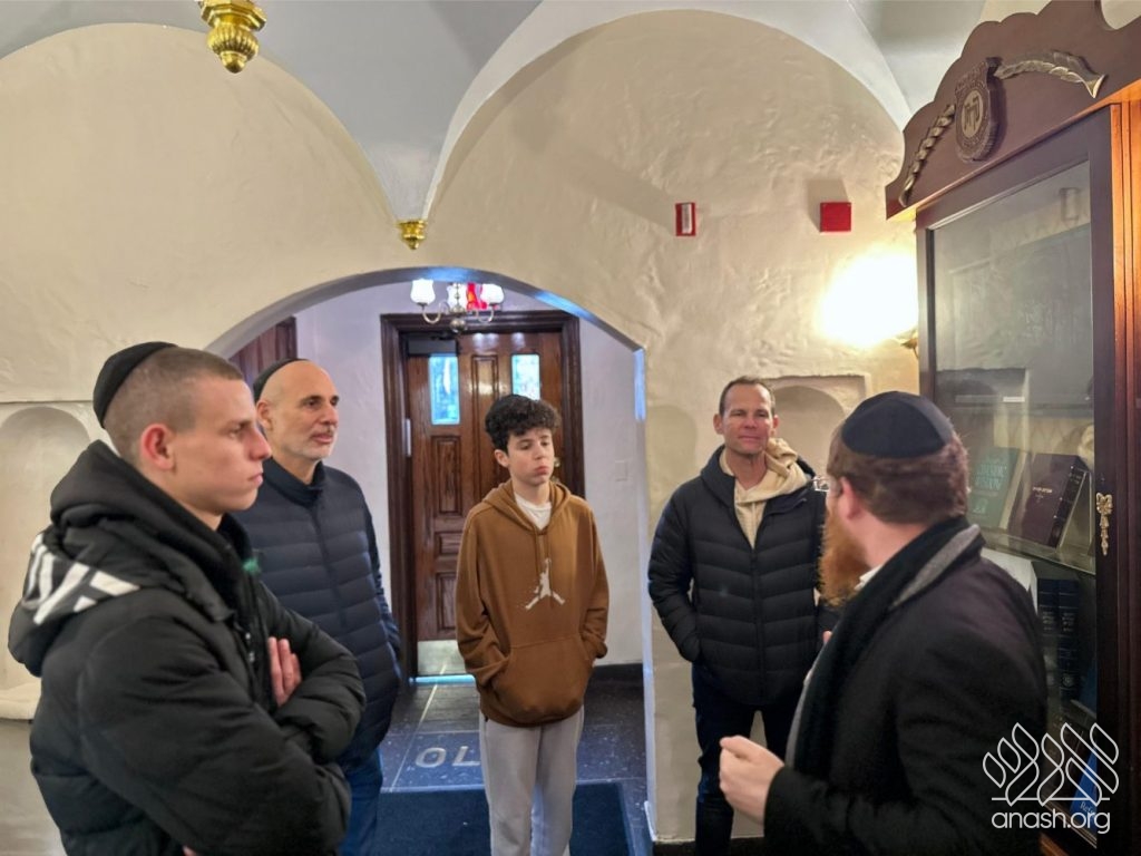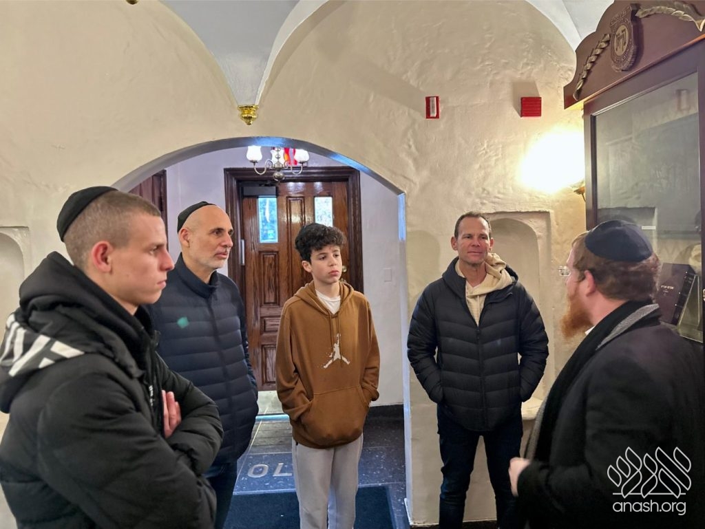 The Manster family was welcomed for a guided tour of 770, led by Rabbi Mendel Eisenbach, director of the “Beis Chabad 770” Visitors Center. The visit offered a close look at the history, energy, and daily life inside the Rebbe’s shul and headquarters.