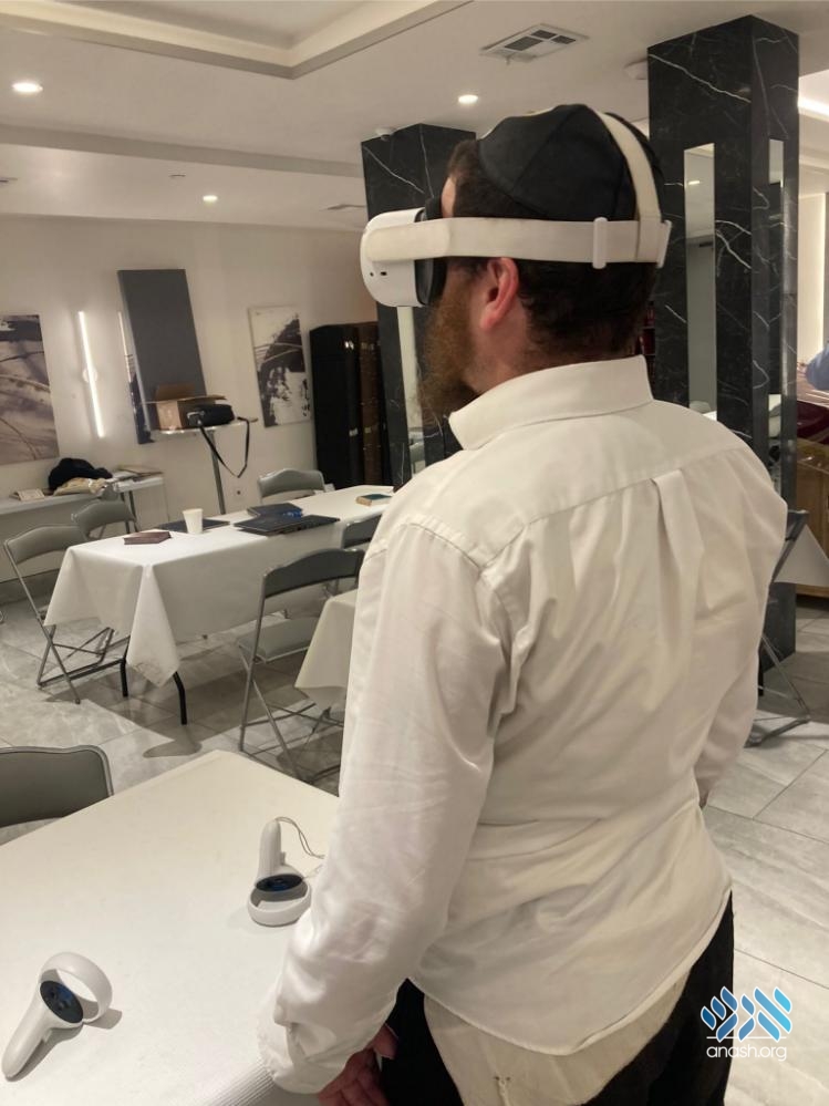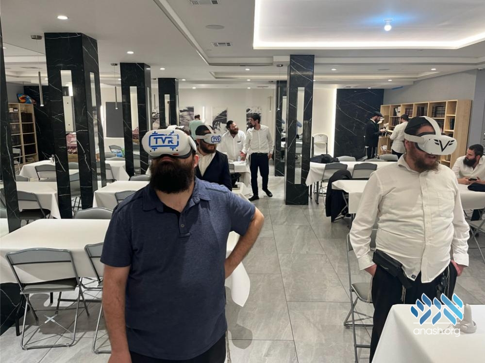 The headsets were brought by TorahVR, a pioneering platform that transforms Torah learning into an immersive experience using virtual reality. With the headset on, participants are able to explore a fully interactive model of the Beis Hamikdash, observe its keilim up close, and walk through its chambers in a vivid and engaging way.