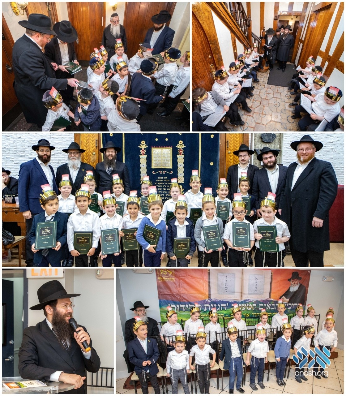 The young students have been studying kriah over the year with their melamed Rabbi Tzemach Willanski and R’ Levi Nemirovski and with veteran mechanech Rabbi Yitzchok Fuchs. The pure young children learning the holy letters of the Alef Beis set the tone for them to receive and treasure a Siddur of their own.