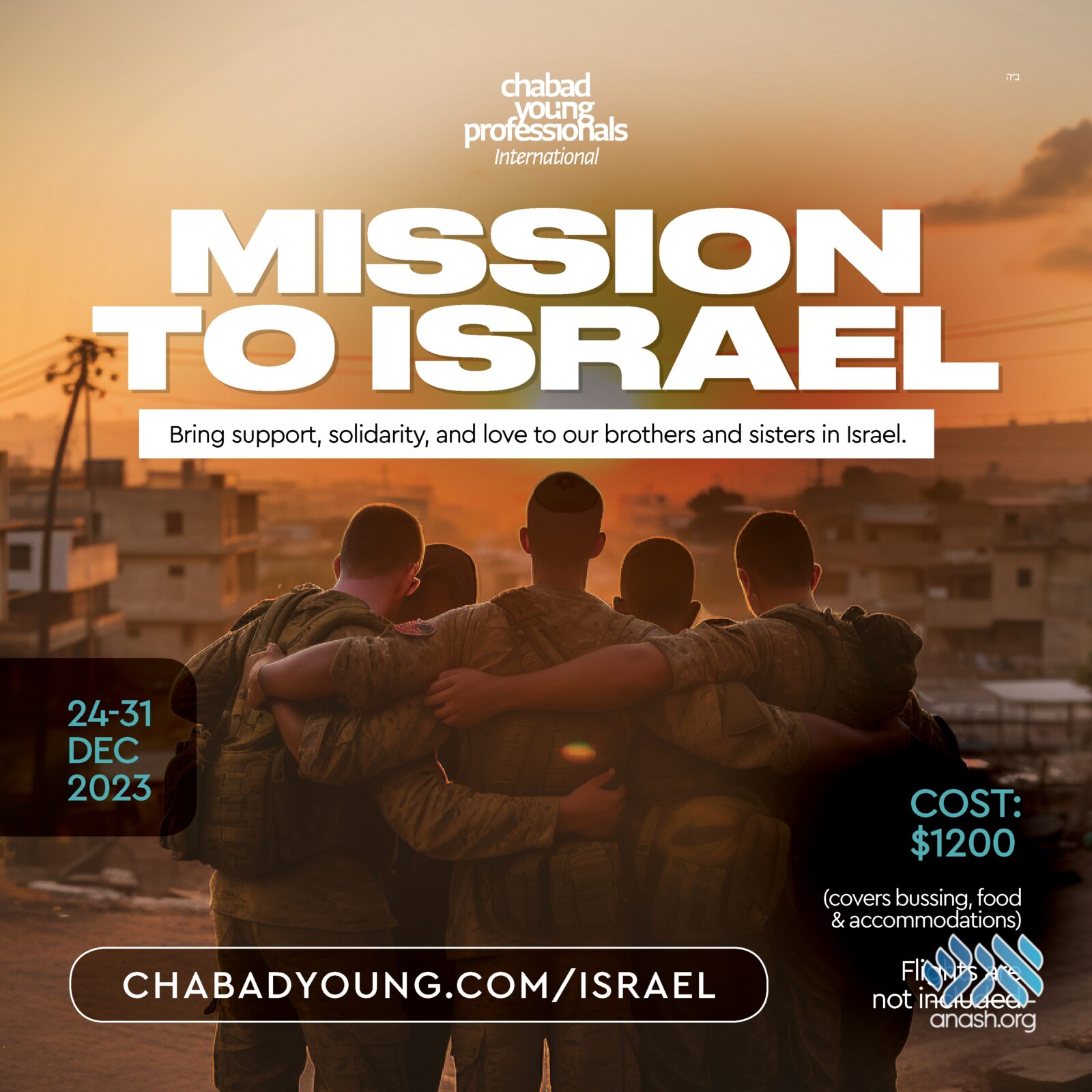 A solidarity trip to Israel organized by Chabad Young Professionals will see young Jewish professionals travel to Israel for a week to bring physical, spiritual, financial, and psychological support to the Israeli public who desperately need it.