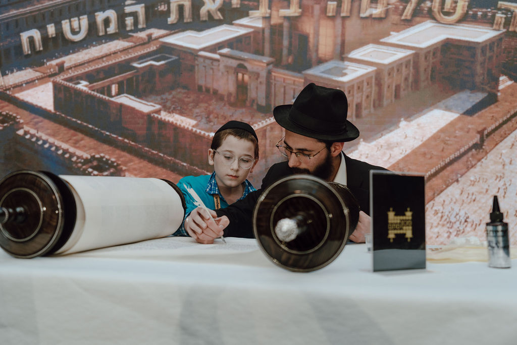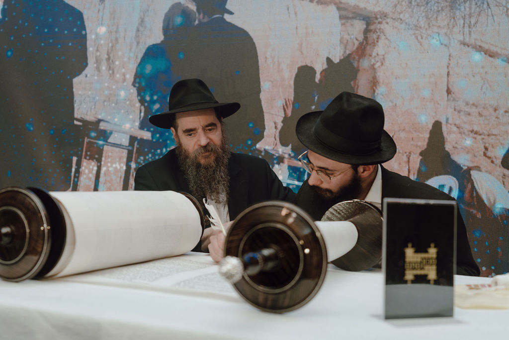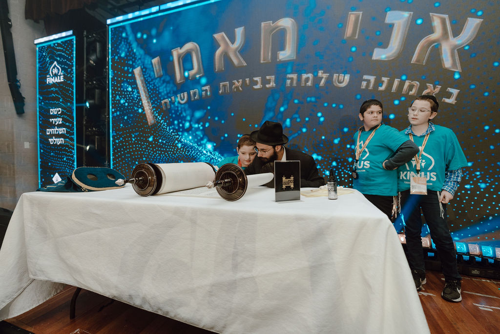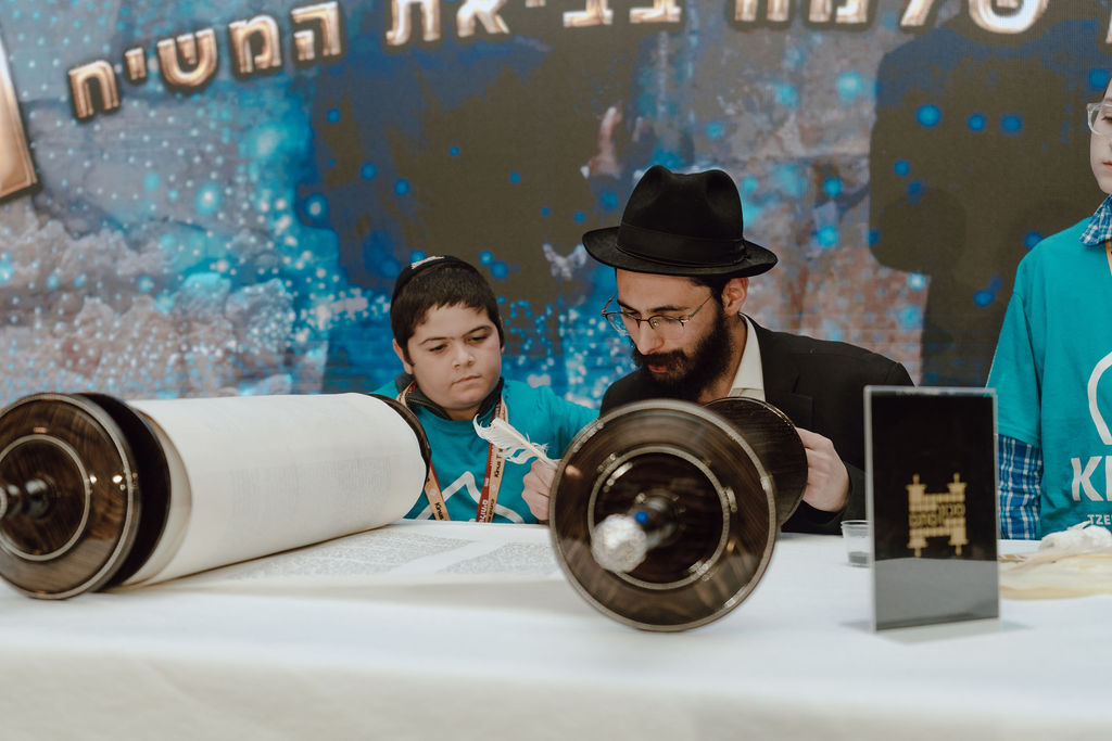 Before Roll Call, a special moment unfolded connected to the Writing Us Together initiative, which encourages Shluchim to help community members purchase letters in the Sefer Torah. The eleventh Sefer Torah Hakloli was brought out, and three young Shluchim were honored with writing some of its final letters. As the Torah was completed and closed, spontaneous dancing broke out in celebration.