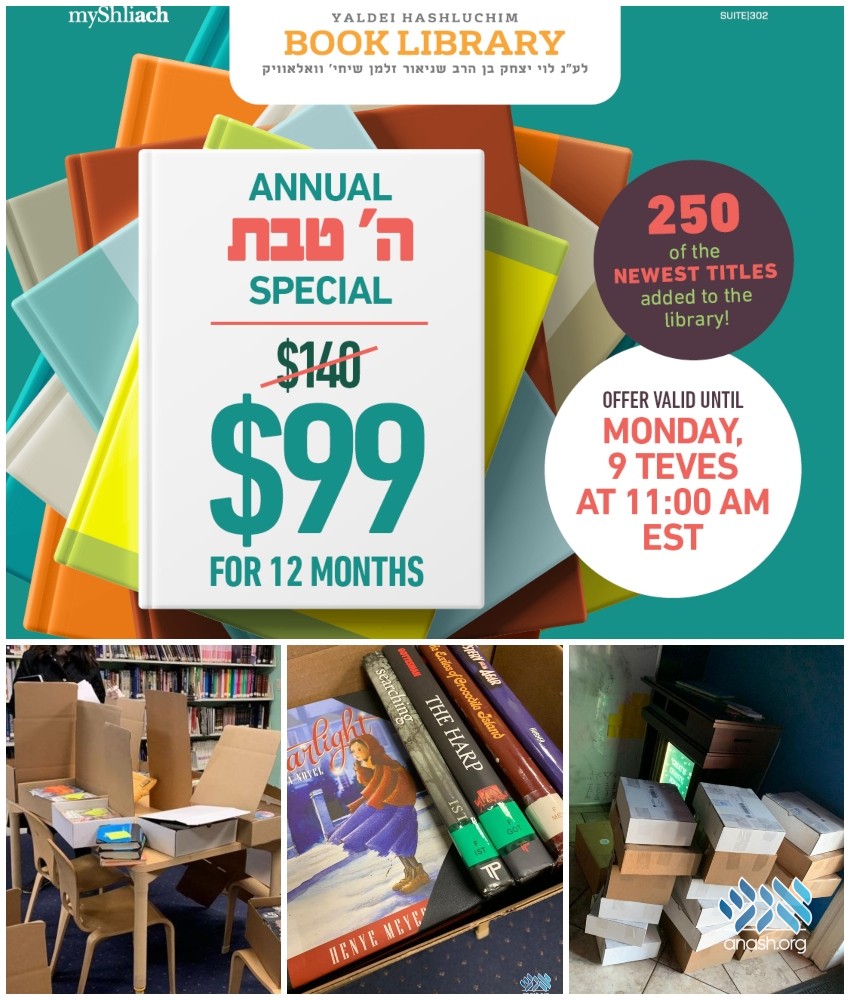 The Yaldei HaShluchim Book Library, which mails boxes of books to young shluchim across the country, is offering a discounted annual subscription in honor of Hei Teves.