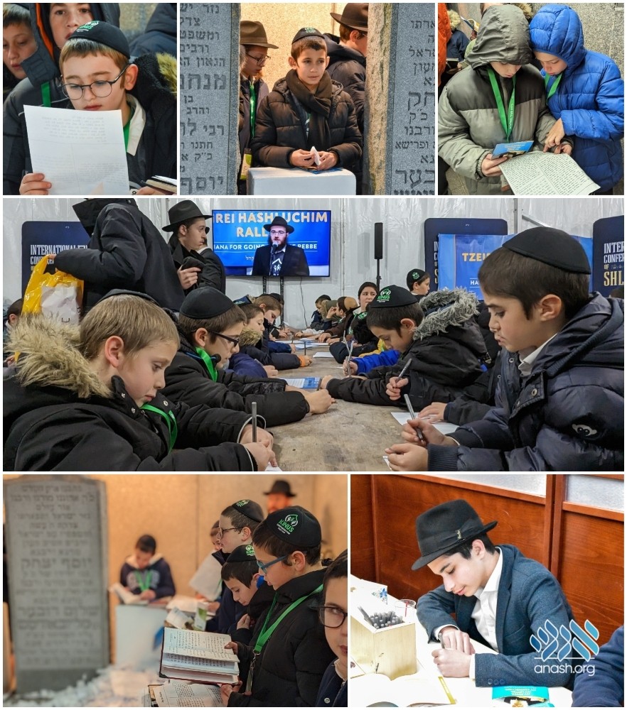 After an empowering and uplifting Shabbos together, all divisions of the Kinus Tzierei Hashluchim headed to the Ohel. During the special rally, the boys got to watch a video of the Rebbe and write their own Pan before going to the Ohel.