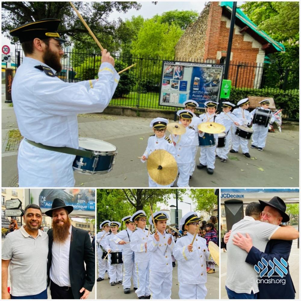 Young soldiers of the Rebbe, students from Ecole Shneor, took to the streets of Aubervilliers France, for a small event commemorating the victory over the Nazi regime on May 8, 1945.