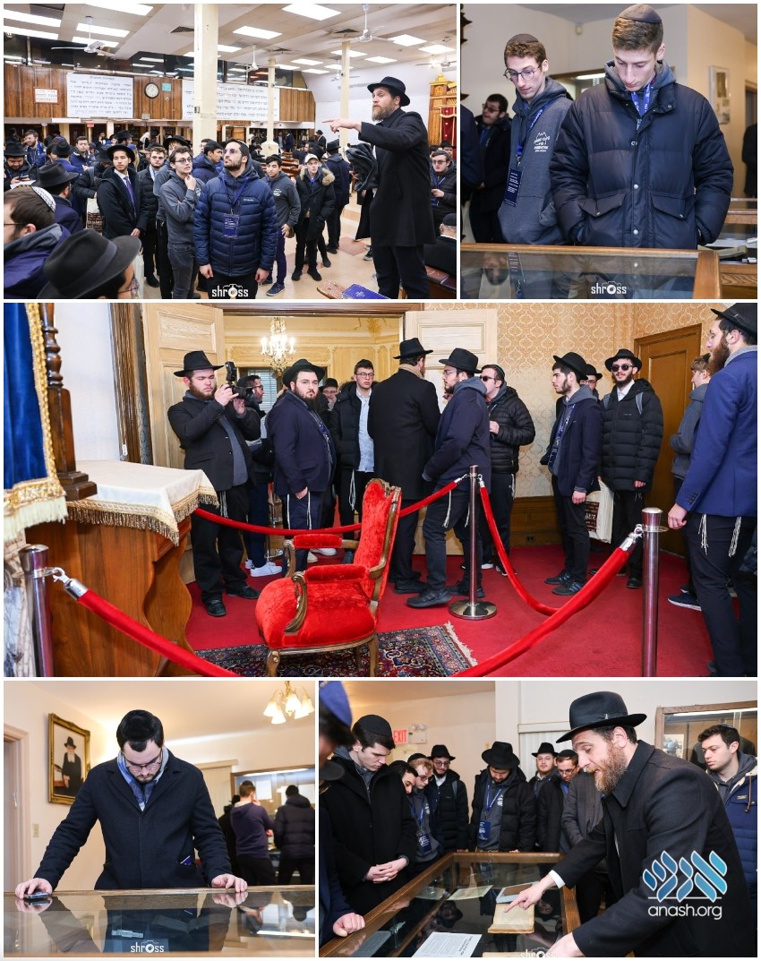 YU students who are in Crown Heights for the annual “Chabad Club @ YU” Shabbaton, were given a tour of 770, the Rebbe’s house, and the Rebbe’s library.
