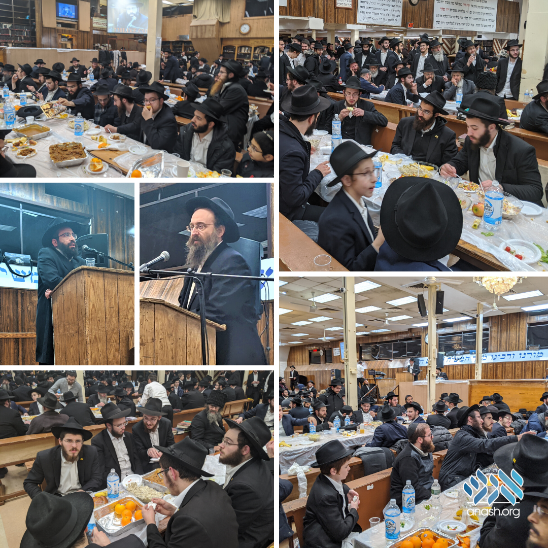 The farbrengen was addressed by Rabbi Yosef Yeshaya Braun member of Crown Heights Beis Din, Rabbi Zalman Hertzel author of the book נישואי הנשיאים, and Rabbi Yankel Chazan.