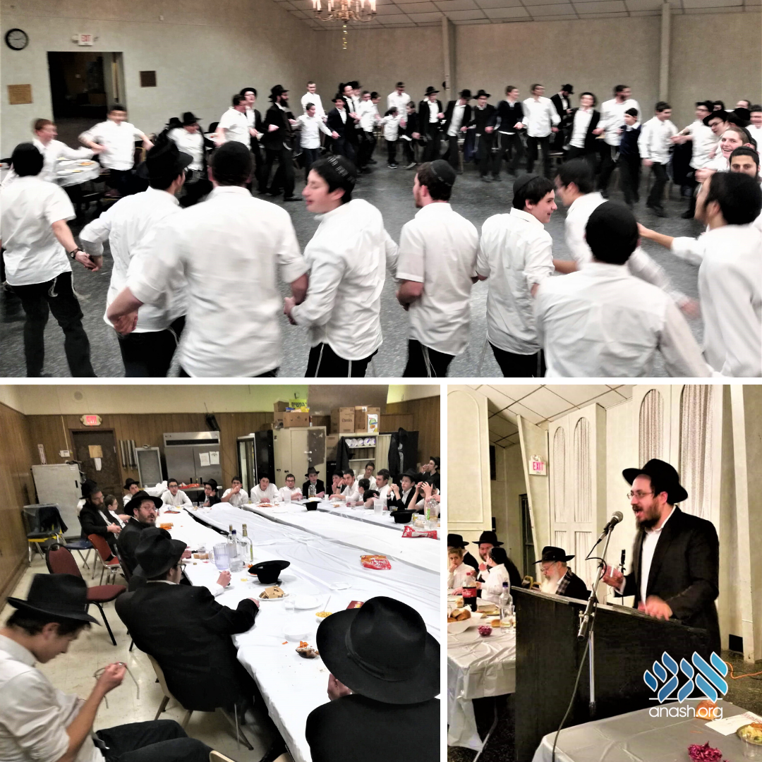 The Bochurim of Yeshivas Lubavitch Cincinnati, directed by Rabbi Gershon Avtzon, celebrated Yud Daled Kislev with a big Seuda and dancing, followed by a festive farbrengen until the early morning.