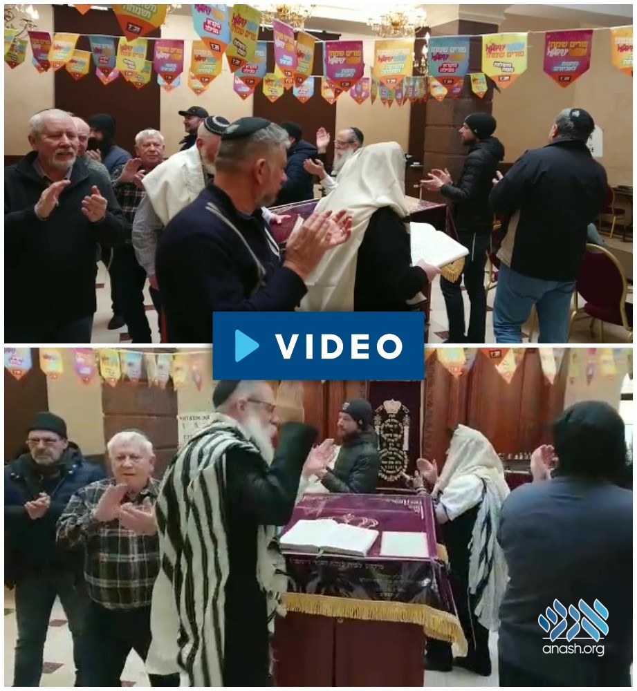 After evacuating hundreds of women and children from Ukraine, shliach Rabbi Shlomo Wilhelm of Zhytomyr broke into a joyous dance with remaining community members in honor of Rosh Chodesh Adar II.