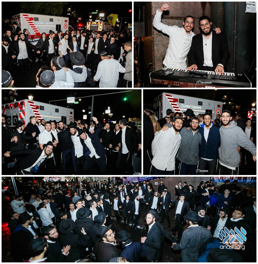 As the solemn yomin noraim concluded and the festive zman simchaseinu began on Motzei Yom Kippur, bochurim joyously danced outside 770 Eastern Parkway.